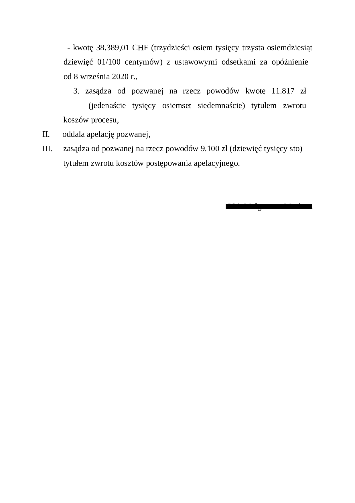 Sąd Apelacyjny w Rzeszowie Wydział I Cywilny wyrokiem z dnia 21 września 2023 r. I ACa 228/23 oddalił apelację banku od wyroku Sądu Okręgowego w Rzeszowie z dnia 26 października 2022 r., sygn. akt I C 372/21 w którym ustalono nieważność umowy zawart ...