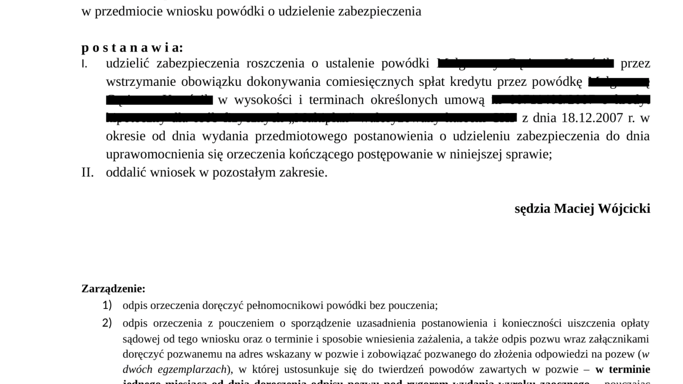 Sprawa dotyczyła wzorca umowy kredytu Własny kąt hipoteczny z 2006 r. - pozew złożony początkiem marca 2021 r. - sąd przesłuchał świadków-pracowników banku na piśmie - odbyła się jedna rozprawa na której przesłuchano kredytobiorców - sąd korzystał z ...